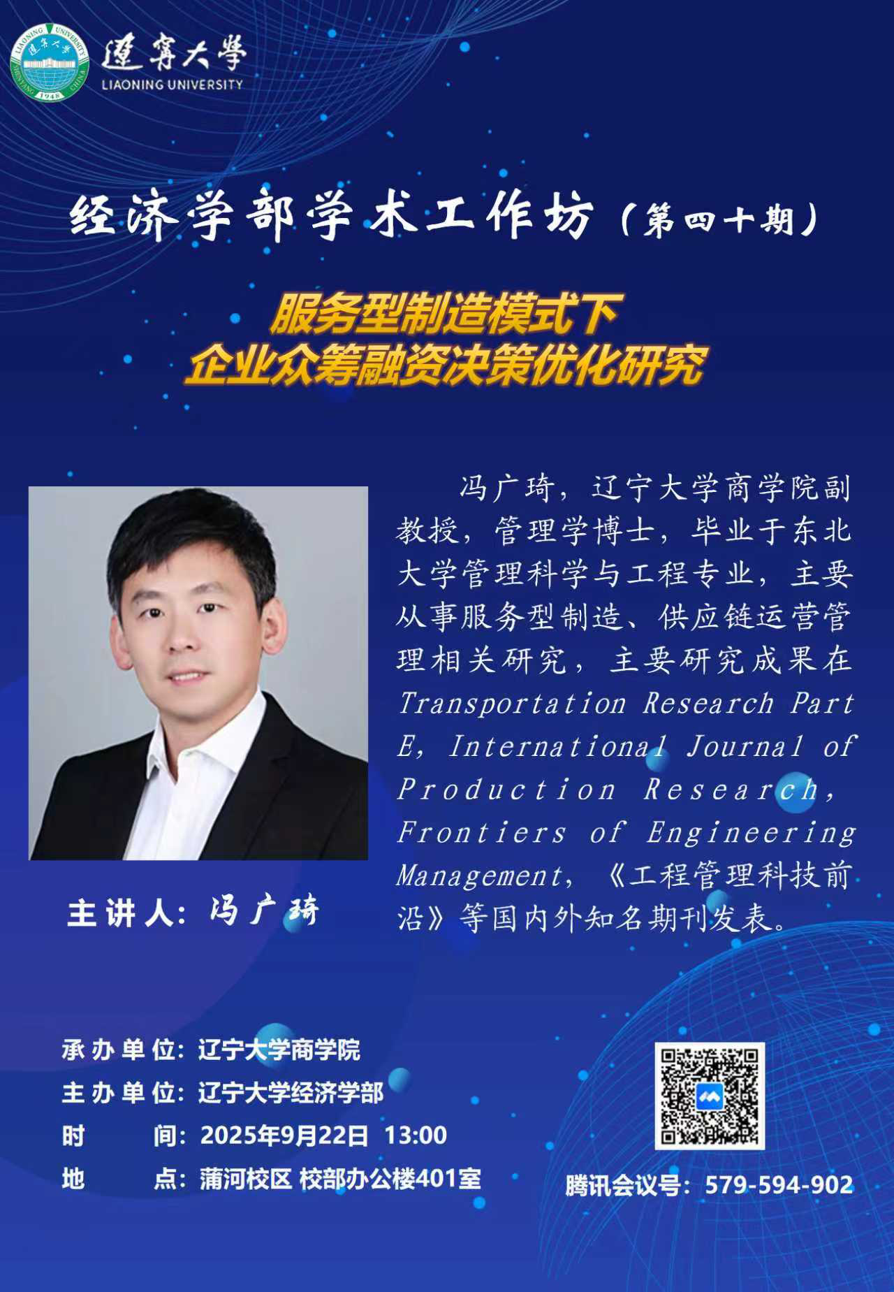 冯广琦,米兰milan官方网站商学院副教授,管理学博士,毕业于东北大学管理科学与工程专业,主要从事服务型制造、供应链运营管理相关研究,主要研究成果在Transportation Research Part E,International Journal of Production Research,Frontiers of Engineering Management,《工程管理科技前沿》等国内外知名期刊发表。