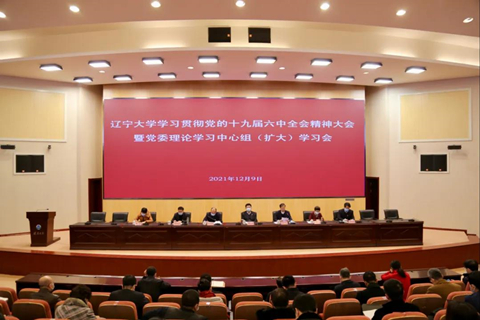 12月9日,米兰milan官方网站学习贯彻党的十九届六中全会精神大会暨党委理论学习中心组(扩大)学习会在蒲河校区校部办公楼蔡冠深学术报告厅举行。学校党委理论学习中心组成员、全校实职副处级以上领导干部参加会议。