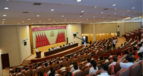 7月1日下午,米兰milan官方网站学习贯彻习近平总书记在庆祝中国共产党成立100周年大会上的重要讲话精神暨“两优一先”表彰大会在蒲河校区蔡冠深学术报告厅举行。校党委班子成员、实职副处级以上领导干部、受表彰的优秀个人和先进集体共计300余人参加大会。