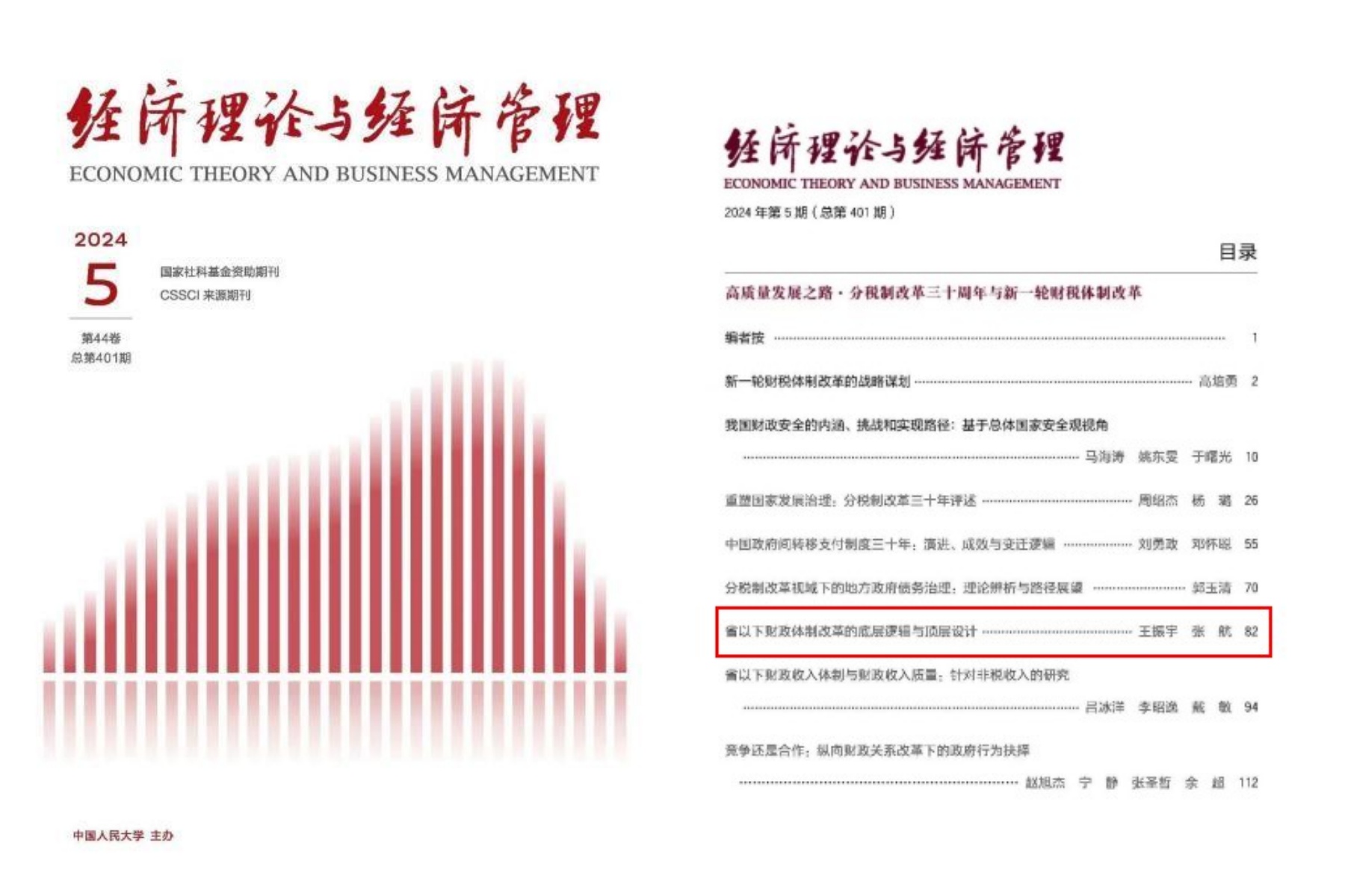 米兰milan官方网站经济学院王振宇教授与博士研究生张航合作撰写的论文《省以下财政体制改革的底层逻辑与顶层设计》在《经济理论与经济管理》2024年第5期发表。