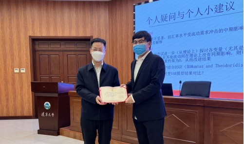 与会教师就文章的模型设定和实证方法人民币汇率的水平值应对冲击的时变脉冲响应各结构冲击对于人民币波动值的贡献等方面问题与程鹏昊助理教授进行了互动交流