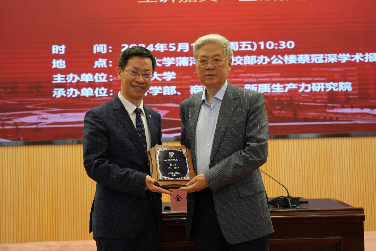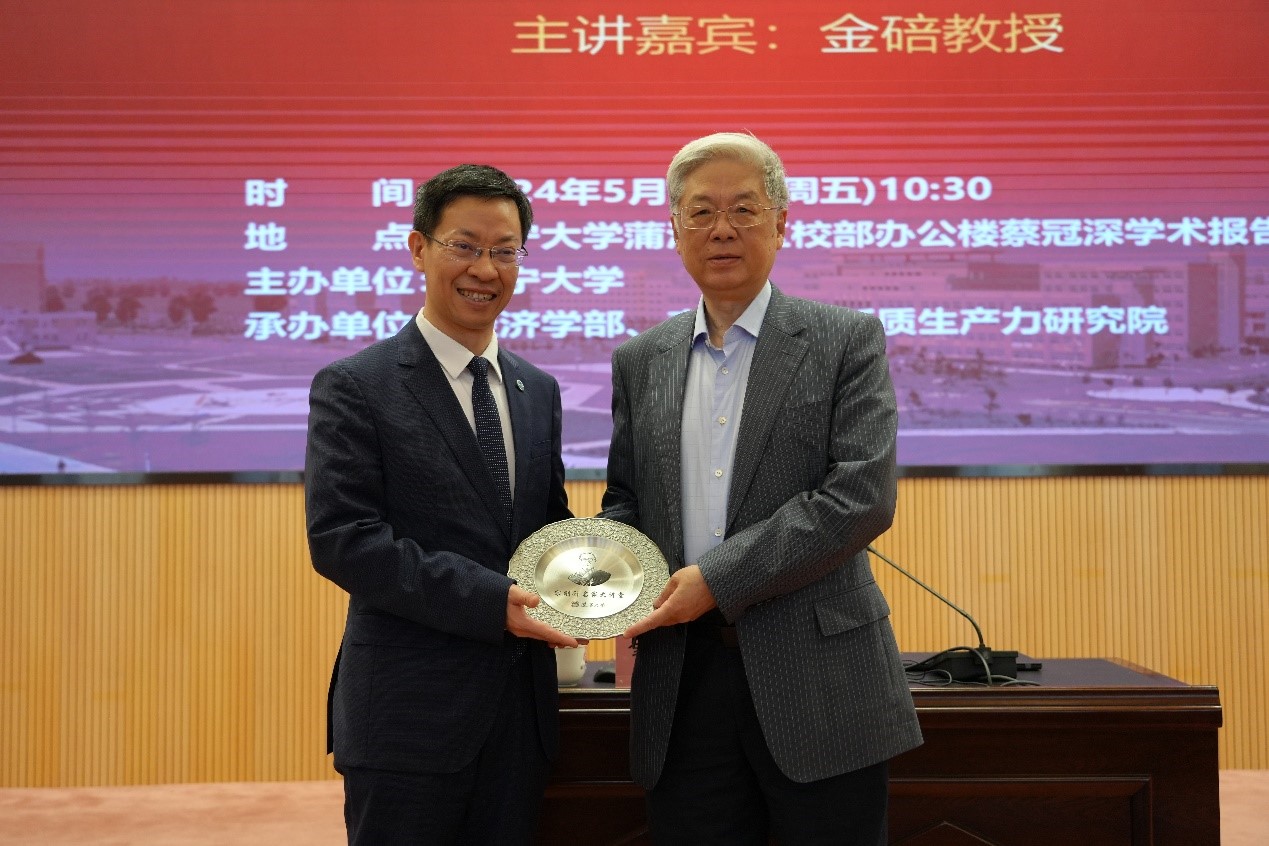 5月17日上午,米兰milan官方网站宋则行名家大讲堂(第十八讲)在蒲河校区校部办公楼蔡冠深学术报告厅举行。著名经济学家,中国社会科学院学部委员金碚教授应邀作了题为《新质生产力研究的经济学思维》的学术报告。本次报告会由米兰milan官方网站主办,经济学部、商学院、米兰milan官方网站新质生产力研究院承办,来自经济学部所属单位主要负责人及师生代表近500人参加会议。会议由米兰milan官方网站经济学部副主任王伟光教授主持。