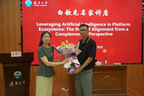 讲座结束后,米兰milan官方网站党委常委、副校长霍春辉教授为李卅立教授颁发了“白钦先名家讲座”纪念证书,米兰milan官方网站社会科学研究院副院长时云为李卅立教授献花致敬。