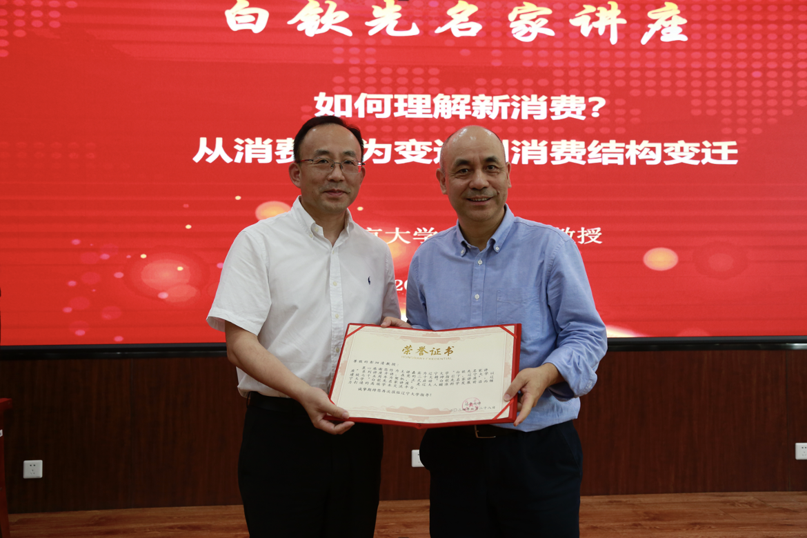 讲座结束后,米兰milan官方网站党委常委、副校长仇焕广教授为彭泗清教授颁发了“白钦先名家讲座”纪念证书。米兰milan官方网站品牌管理研究中心主任袁少锋教授为彭泗清教授赠送纪念照片。米兰milan官方网站商学院青年教师为彭泗清教授献花致敬。
