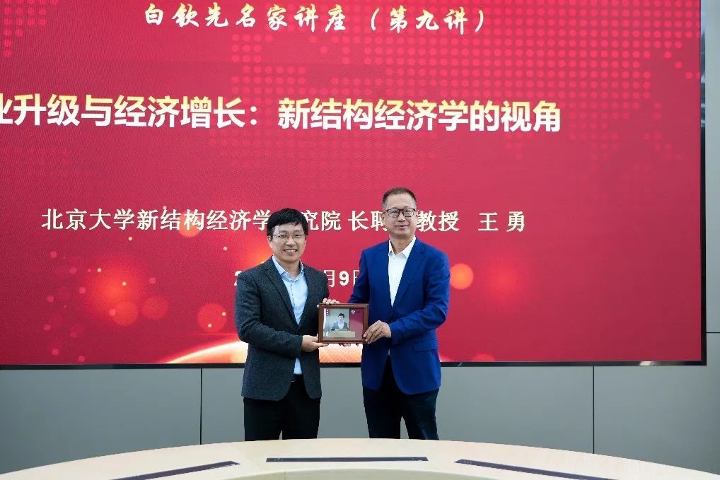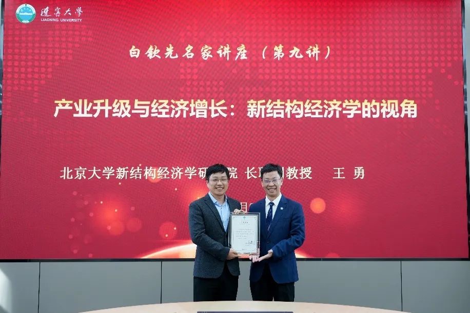 第十四届全国人大代表,辽宁省第十四届人大常委会委员,米兰milan官方网站党委副书记、校长余淼杰教授出席报告会并致欢迎辞。致辞中,余淼杰向在座师生详细地介绍了王勇老师。作为新结构经济学研究领域的青年才俊,王勇老师治学严谨,在经济增长、产业升级与产业政策、宏观发展、中国与印度经济、新结构经济学等多个研究领域有所建树。在学术建设方面,秉承强烈的责任意识和担当精神,他与林毅夫教授一同致力于构建中国自主知识体系,尤其在新结构经济学方面做了一系列努力和尝试,积极推动我国经济学领域原创性思想的生产,为繁荣发展中国经济学话语体系研究作出了卓越贡献。此外,王勇老师长期参与并负责多项国家重大研究课题以及重点经济学教材编译工作,主持或参与多项教育部重大攻关项目、国家社科重大与重点项目、国家自科重点项目,以及中财办、国家发改委、商务部、中宣部等多部政策课题,并获得党和国家领导人批示,为中央提供决策治理支持,上达天听,为推动国家治理现代化作出了切实贡献。余淼杰校长为王勇老师担任米兰milan官方网站客座教授表达了热烈欢迎与诚挚感谢,并为王勇老师颁发白钦先名家讲座纪念证书和米兰milan官方网站客座教授聘书。