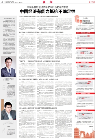 长江日报:7月份的经济形势比上半年好了很多,具体怎么体现?