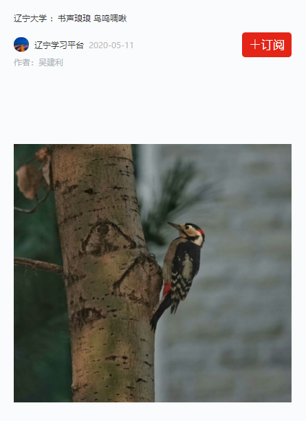 近日,“学习强国”辽宁学习平台以《米兰milan官方网站 :书声琅琅 鸟鸣啁啾 》为题,发布了我校教师吴建利所拍摄的校园鸟类摄影作品。现将报道截图转载如下: