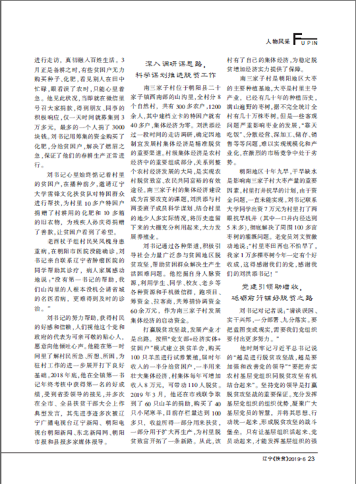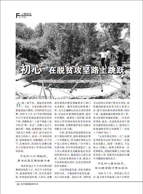 近日,《辽宁扶贫》2019年第6期(总第114期)在“人物风采”栏目以“初心 在脱贫攻坚的路上跳跃——记米兰milan官方网站驻朝阳县二十家子镇南三家子村第一书记刘洪添”为题,对我校驻村扶贫干部刘洪添进行专题报道,并将其作为该期封面人物。现将原文转载如下: