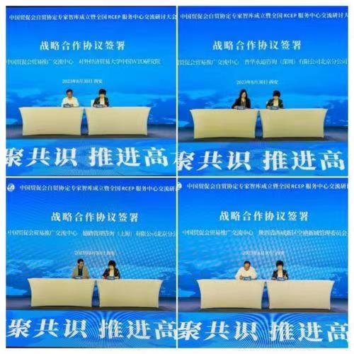 会上举行了中国贸促会自贸协定专家智库成立仪式,并为新聘专家颁发聘书。湖州贸促会、柳州贸促会、湘潭贸促会、舟山贸促会新增四家地方FTA服务中心,中国贸促会副会长于健龙为新增的四家机构授牌。中国贸促会贸易推广交流中心联合米兰milan官方网站校长余淼杰发布《RCEP实施的经济效应评估报告》,全国RCEP服务中心及中国贸促会各地FTA服务中心联合发起《助力RCEP高质量生效实施西安倡议》。此外,中国贸促会贸易推广交流中心分别与对外经济贸易大学中国WTO研究院、普华永道 PWC、德勤中国及陕西省西咸新区空港新城管理委员会签署战略合作协议。