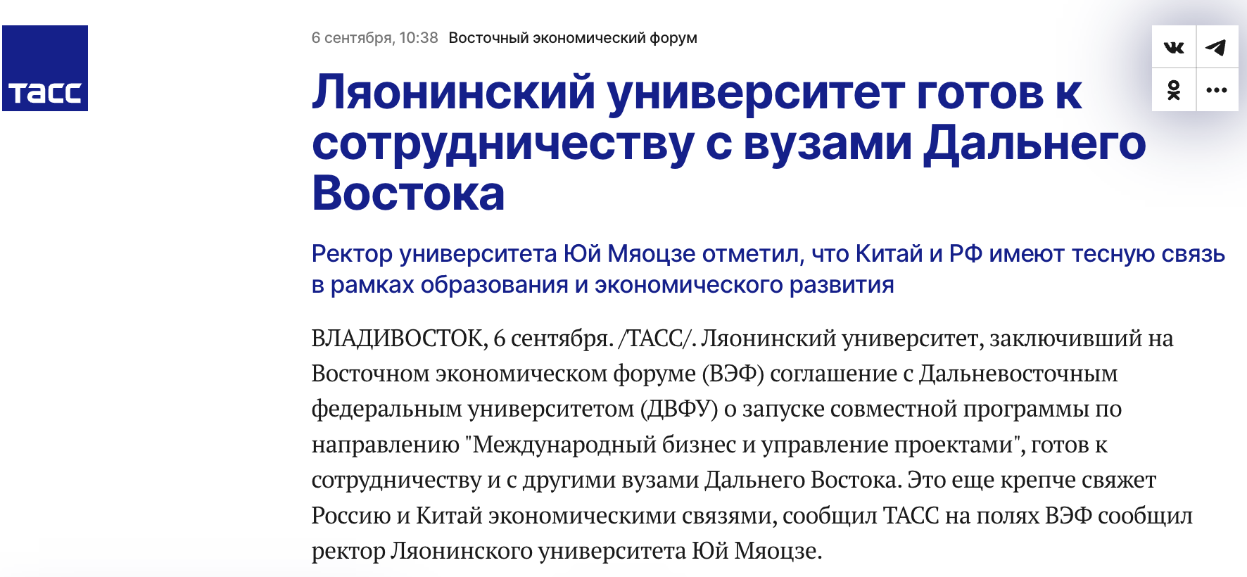 Ляонинский университет готов к сотрудничеству с вузами Дальнего Востока