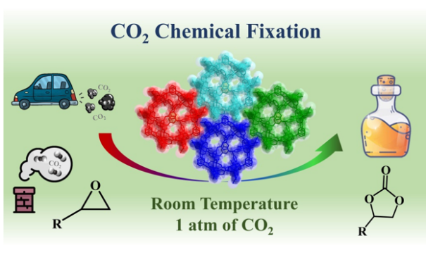 日前,化学院韩正波教授课题组在金属有机多面体领域取得新进展,相关研究成果在国际著名化学期刊Chemical Communications发表。金属有机多面体(MOPs)作为一类新型材料,因其具有灵活的拓扑结构及功能化的限域空间,在催化、分离、主客体化学等方面显示出巨大的应用前景。米兰milan官方网站化学院韩正波教授研究团队采用4-连接Cu2(COO)4轮桨单元和3-连接半刚性羧酸配体利用溶剂热法设计合成一例具有rdo拓扑结构的MOPs材料:[Cu12(TCPT)8(H2O)6(DMF)6]·xS (Cu-MOP)。该材料具有高密度Lewis酸性Cu(II)中心,及在有限纳米空间中存在富氮配体,故Cu-MOP具有高度选择性吸附CO2的能力,兼具有良好的化学稳定性和热稳定性,可选作非均相催化剂在环境条件下将CO2化学固定为环状碳酸酯,并展示出了优异的催化性能。这项研究论证了MOPs在CO2分离及催化转化领域的潜在应用。