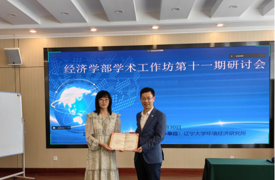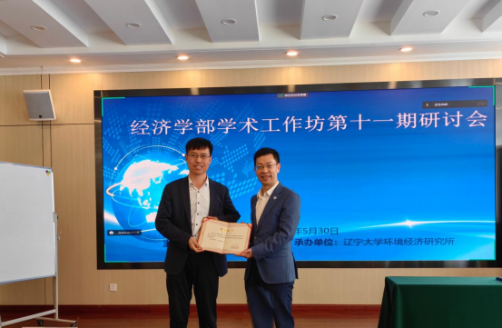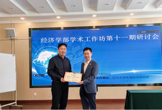 2023年5月30日下午,经济学部学术工作坊第十一期研讨会在崇山校区五洲园一楼会议室以线下线上相结合的方式举行。第十四届全国人大代表、辽宁省第十四届人大常委会委员,米兰milan官方网站党委副书记、校长余淼杰教授出席会议,为经济学部学术工作坊第八、十、十一期研讨会主讲人新华国际商学院薄澜教授、数学与统计学院祝志川教授、环境经济研究所所长宋有涛教授依次颁发纪念证书并致辞。会议由经济学部副主任王伟光教授主持。