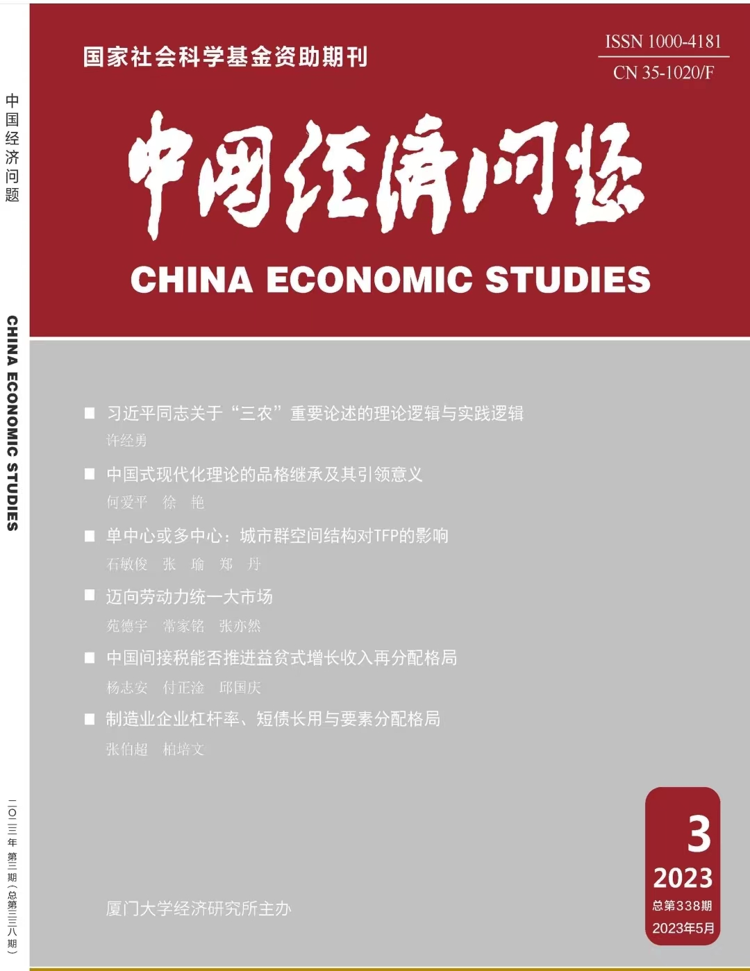 米兰milan官方网站经济学院杨志安教授与其指导的博士生付正淦、邱国庆副教授合作在《中国经济问题》2023年第3期发表封面论文《中国间接税能否推进益贫式增长收入再分配格局——基于中国家庭追踪调查(CFPS)微观数据测算模拟》。