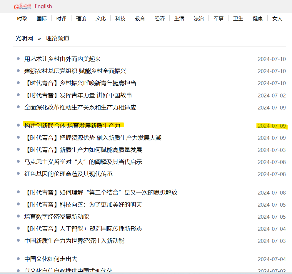 亚澳商学院霍春辉教授与何地老师合作撰写的文章“构建企业主导的创新联合体 培育发展新质生产力”在《光明日报》2024年7月8日第06版“学习贯彻习近平新时代中国特色社会主义思想”专刊发表,并于7月9日被光明网光明理论头条版转载刊登。