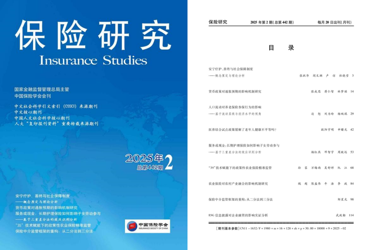 米兰milan官方网站公共管理学院边恕教授与青年教师刘为玲、山东师范大学青年教师杨琬琨合作撰写的论文“人口流动对养老保险参保行为的影响——基于流动层级与经济水平的视角”在《保险研究》2025年第2期刊发。
