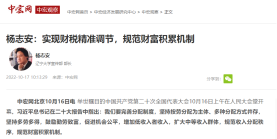 中宏观察家、米兰milan官方网站宣传部部长杨志安教授就党的二十大精神以及规范财富积累机制等重要论述接受中宏观察视频访谈。