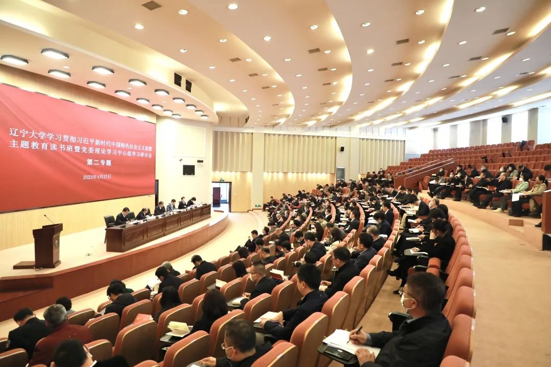4月27日上午,米兰milan官方网站学习贯彻习近平新时代中国特色社会主义思想主题教育读书班暨党委理论学习中心组召开第二专题学习研讨会,对“感悟思想伟力、保持战略定力,用创新理论指导中国式现代化辽宁实践”这一专题进行集中学习。学校党委书记潘一山主持读书班并作交流发言。学校党委副书记、校长余淼杰出席读书班并领学。
