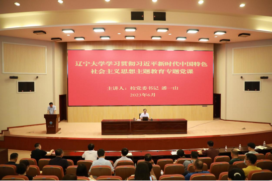 按照省委主题教育部署要求和学校党委工作安排,6月25日,校党委书记潘一山以《以社会现实场景真实问题为主轴,“走出去、走进去、走上去”,实现人才培养科学研究社会服务一体化》为题,在蒲河校区校部办公楼蔡冠深学术报告厅,为学校处级干部、基层党支部书记、专职组织员、学生党员代表讲授专题党课。省委第十七巡回指导组成员、沈阳航空航天大学总务部副主任赵元到场指导。