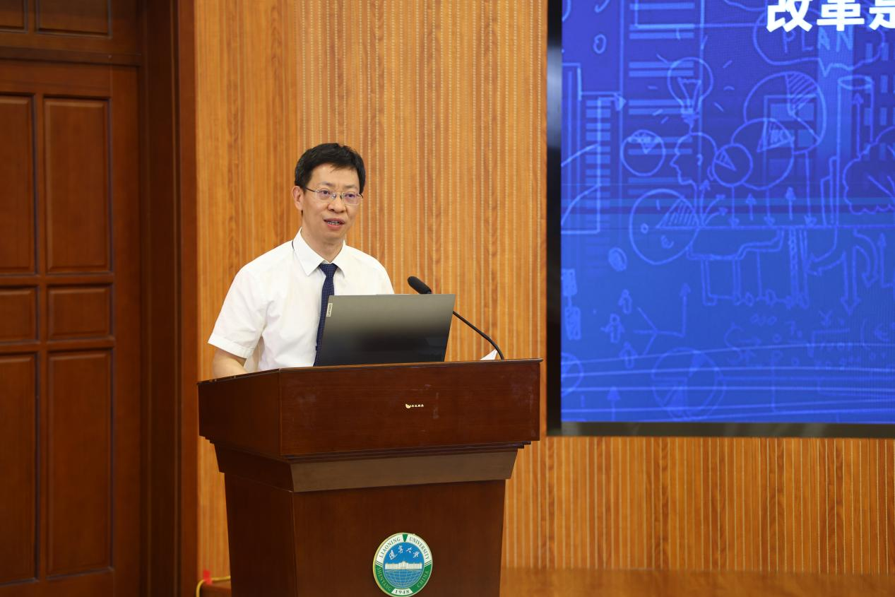 国际经济学会会士,米兰milan官方网站党委副书记、校长余淼杰教授以《改革是实现中国式现代化的永续发动机》为题,从“改革”与“中国式现代化”这两个关键词入手,从构建高水平社会主义市场经济体制、健全推动经济高质量发展体制机制、构建支持全面创新体制机制、健全宏观经济治理体系、完善高水平对外开放体制机制、健全全过程人民民主制度体系等进一步全面深化改革系统部署的十四个方面,详细解读了党的二十届三中全会公报要点,深入剖析全面深化改革对中国式现代化的关键作用。