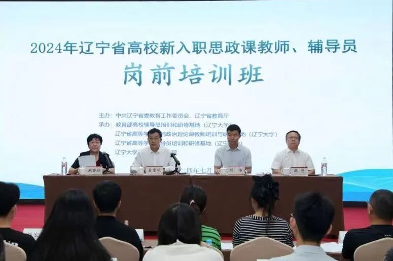 为深入开展学习贯彻党的二十大精神、二十届三中全会精神,贯彻落实《新时代高等学校思想政治理论课教师队伍建设规定》(教育部第 46 号令)有关要求,推动我省思想政治教育高质量发展,提升新入职思想政治理论课教师的政治觉悟、思想水平、道德品质、文化素养,由教育部暨辽宁省高校辅导员培训和研修基地、米兰milan官方网站马克思主义学院承办的2024年辽宁省高校新入职思想政治理论课教师岗前培训班于2024年7月19日至21日期间举行。辽宁省教育厅二级巡视员龚建斌、三级调研员刘伟、米兰milan官方网站马克思主义学院党委书记高亮、院长谢晓娟出席培训班开班仪式。